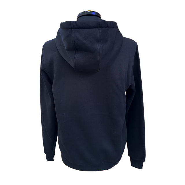 Schwarzer Hoodie mit besonderem Jubiläums-Design: Auf der Front ein Polaroid-Motiv des Bayreuther Eisstadions, ergänzt durch den Schriftzug „Since 75“.